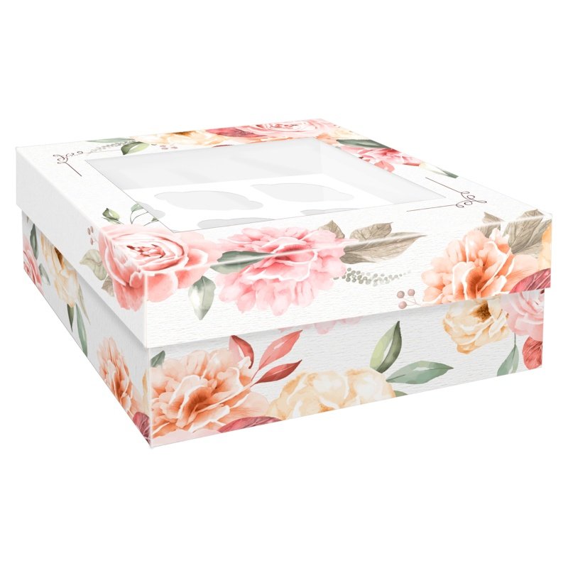 Коробка на 9 капкейков с окном "Пионы"