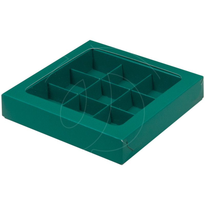 Доставка Коробка на 9 конфет с окном матовая зелёная из магазина в вашем городе: