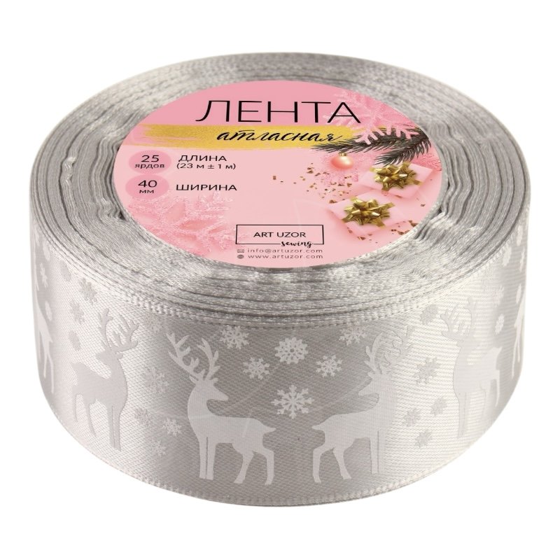 Доставка Лента для декора и упаковки Атласная Серебряная "Олени" 40 мм из магазина в вашем городе: