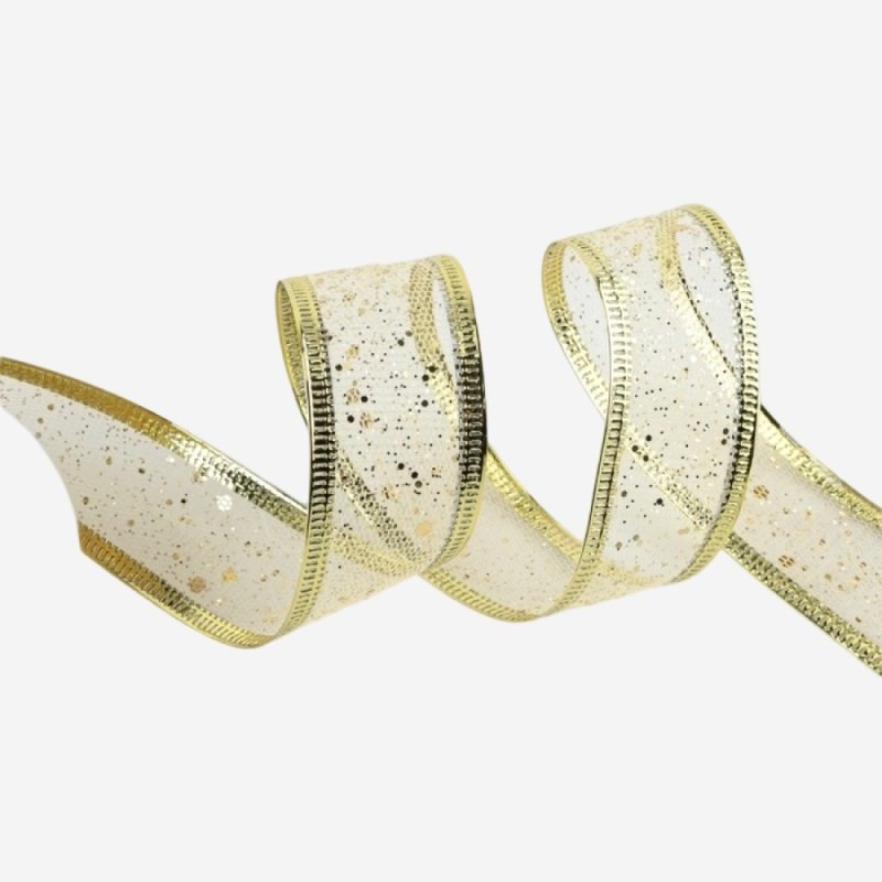 Доставка Лента для декора и упаковки Капроновая "Блёстки" Золото 2,5 см из магазина в вашем городе: