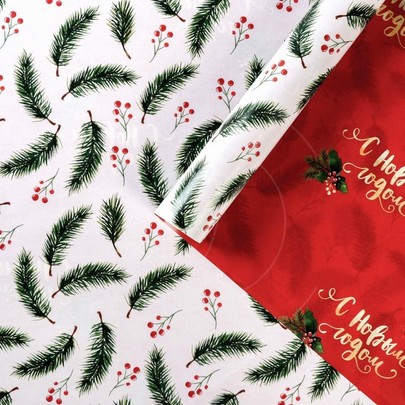 Доставка Бумага упаковочная двухсторонняя "Новогодние ветви" 70х100 см из магазина в вашем городе: