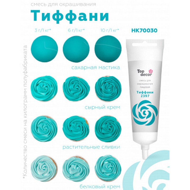 Доставка Краситель пищевой гелевый водорастворимый Top Decor Тиффани 100 г из магазина в вашем городе: