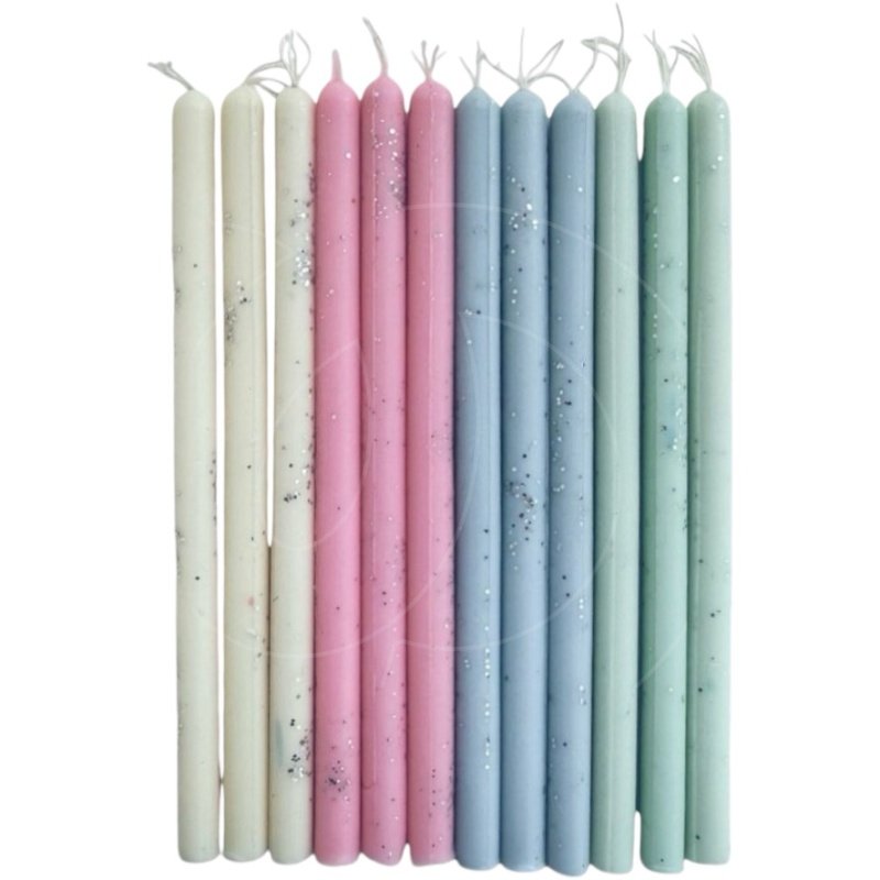 Свечи декоративные для бенто-торта Белый, розовый, голубой, зелёный 12 шт