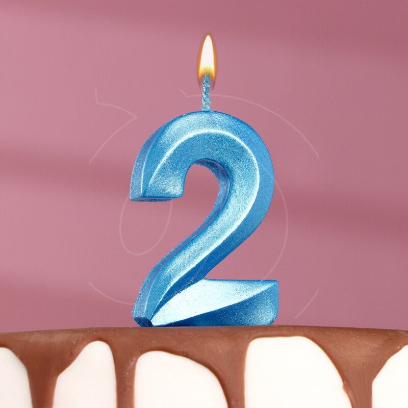 Доставка Свеча декоративная Цифра "2" Голубая блестящая из магазина в вашем городе: