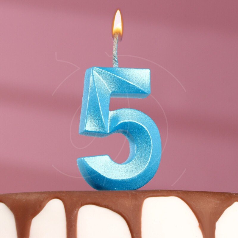 Доставка Свеча декоративная Цифра "5" Голубая блестящая из магазина в вашем городе: