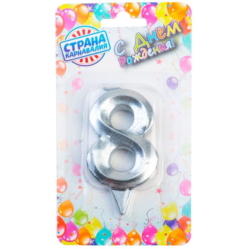 Доставка Свеча декоративная Цифра "8" Грань Серебро из магазина в вашем городе: