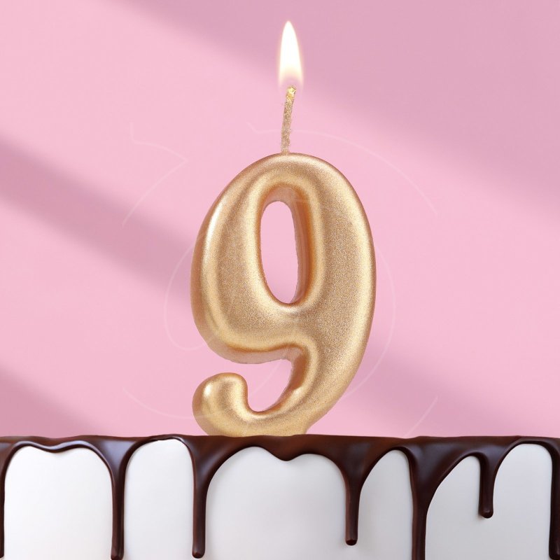 Доставка Свеча декоративная овальная "Цифра 9" Золотая из магазина в вашем городе:
