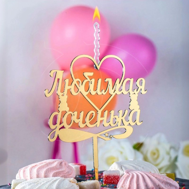Доставка Свеча-топпер декоративная акриловая "Любимая доченька" Золото из магазина в вашем городе: