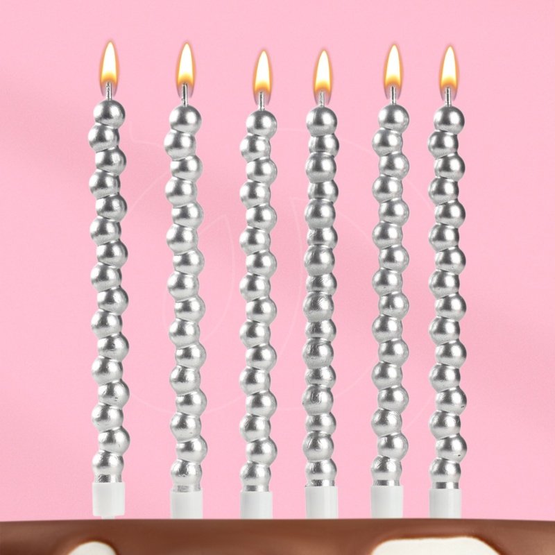 Свечи декоративные "Жемчужины серебро" 6 шт