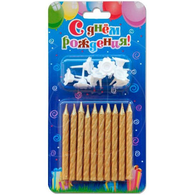 Свечи декоративные "Завитки" Золотые 6 см 10 шт