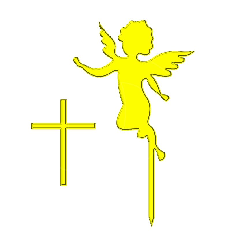 Доставка Топпер декоративный акриловый "Ангел с крестиком на палочке" Золото 7х8 см из магазина в вашем городе: