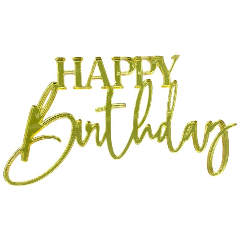 Доставка Топпер декоративный акриловый "Happy birthday" Золото 11х7 см из магазина в вашем городе: