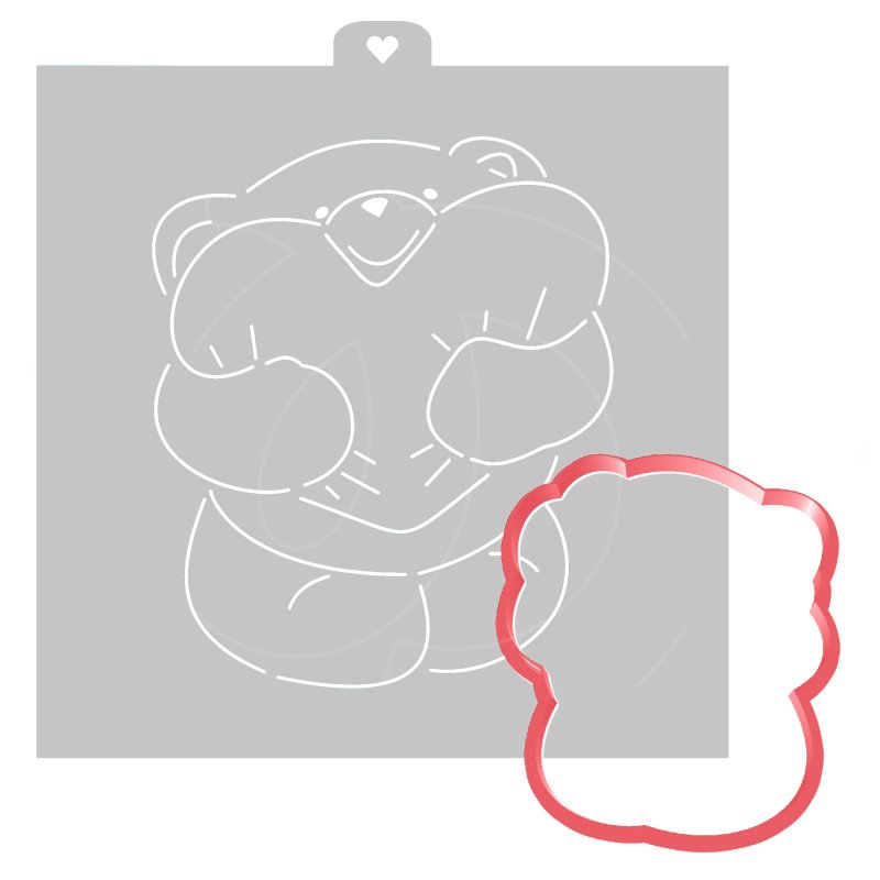 Вырубка пластиковая и трафарет LUBIMOVA "Влюбленный мишка"