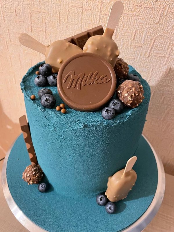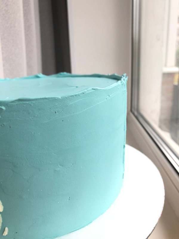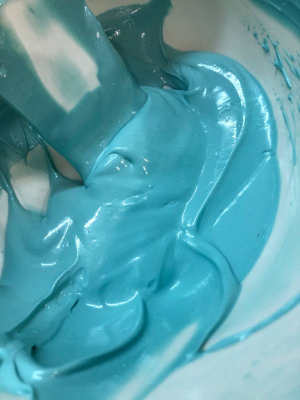Очень пигментированный краситель, даёт приятный цвет. Я окрашивала ганаш для покрытия торта. Сначала отбелила диоксидом, чтобы итоговый цвет не ушёл в зелёный, затем добавила краситель. Всем советую пробивать массу пробивать блендером, после добавления жирорастворимого красителя. Таким образом, вы избавитесь от возможных комочков красителя и поможете цвету немного разойтись, равномерно соединиться с массой. Мне кажется, что у меня в итоге цвет больше уходит в голубой. Не знаю, зависит ли это от кол-ва диоксида/самого красителя или от партии. Но цвет всё равно получился очень красивый.