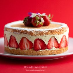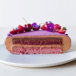 Рецепт: Бакский чизкейк с голубой матчей под ягодным соусом
